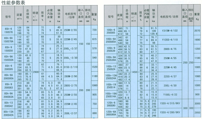 根據(jù)水泵行業(yè)規(guī)定,Sh型與S型兩大系列中開泵井存,直到統(tǒng)一設計出新型泵代替這兩個系列是為止。